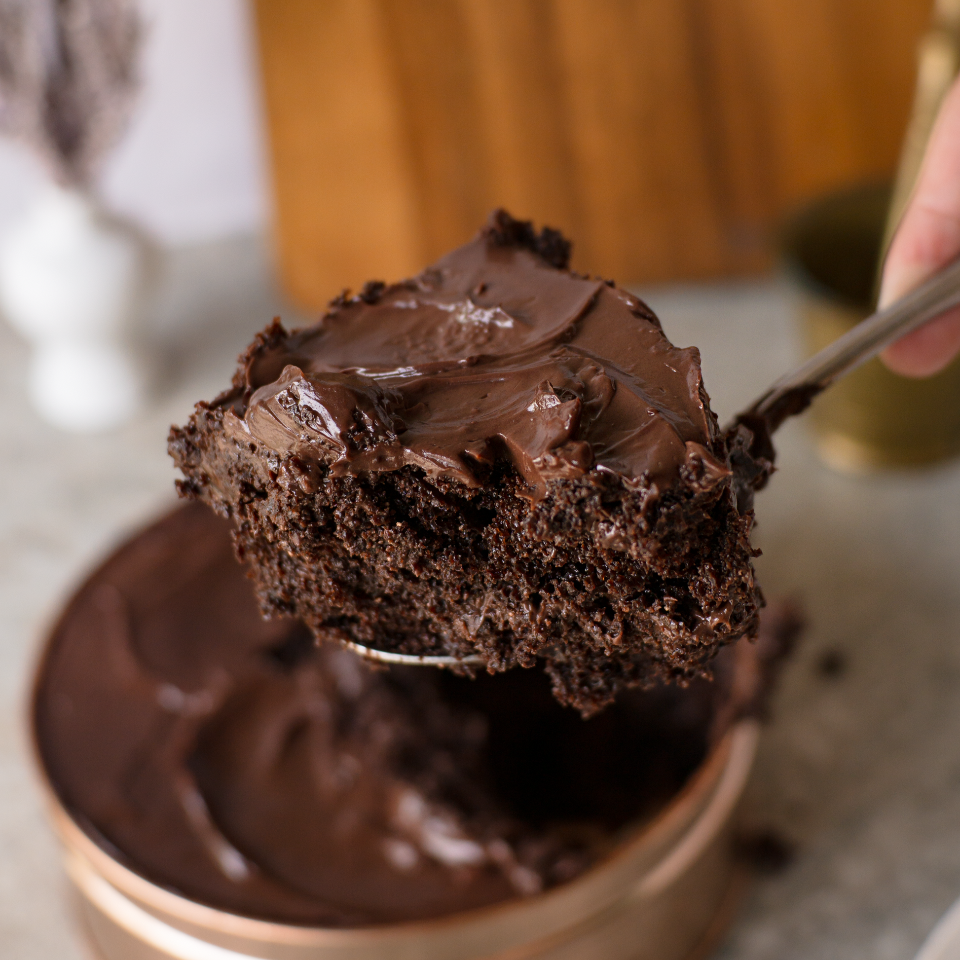 A super moist chocolate cake covered in our signature dark milk ganache...but without any of that added sugar!